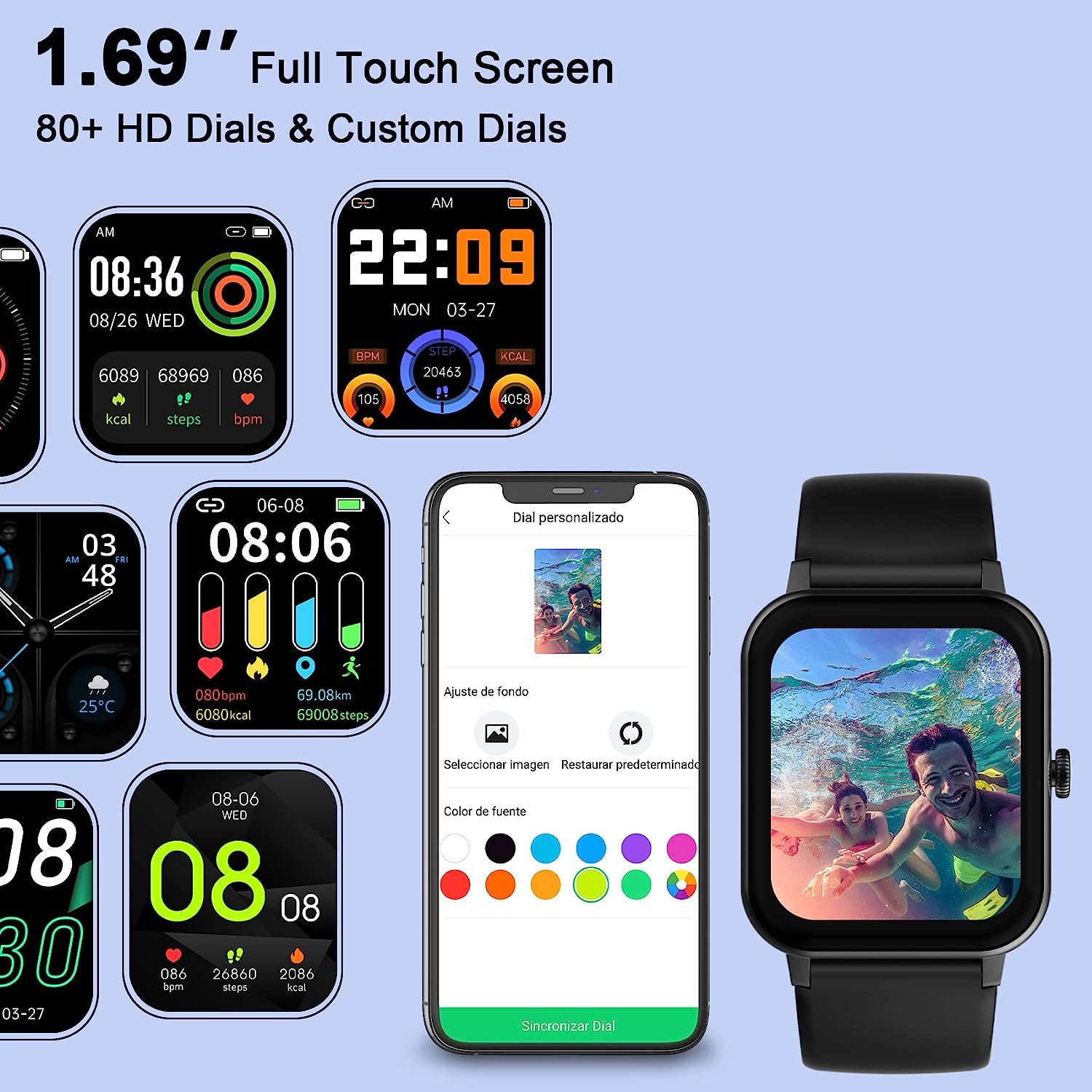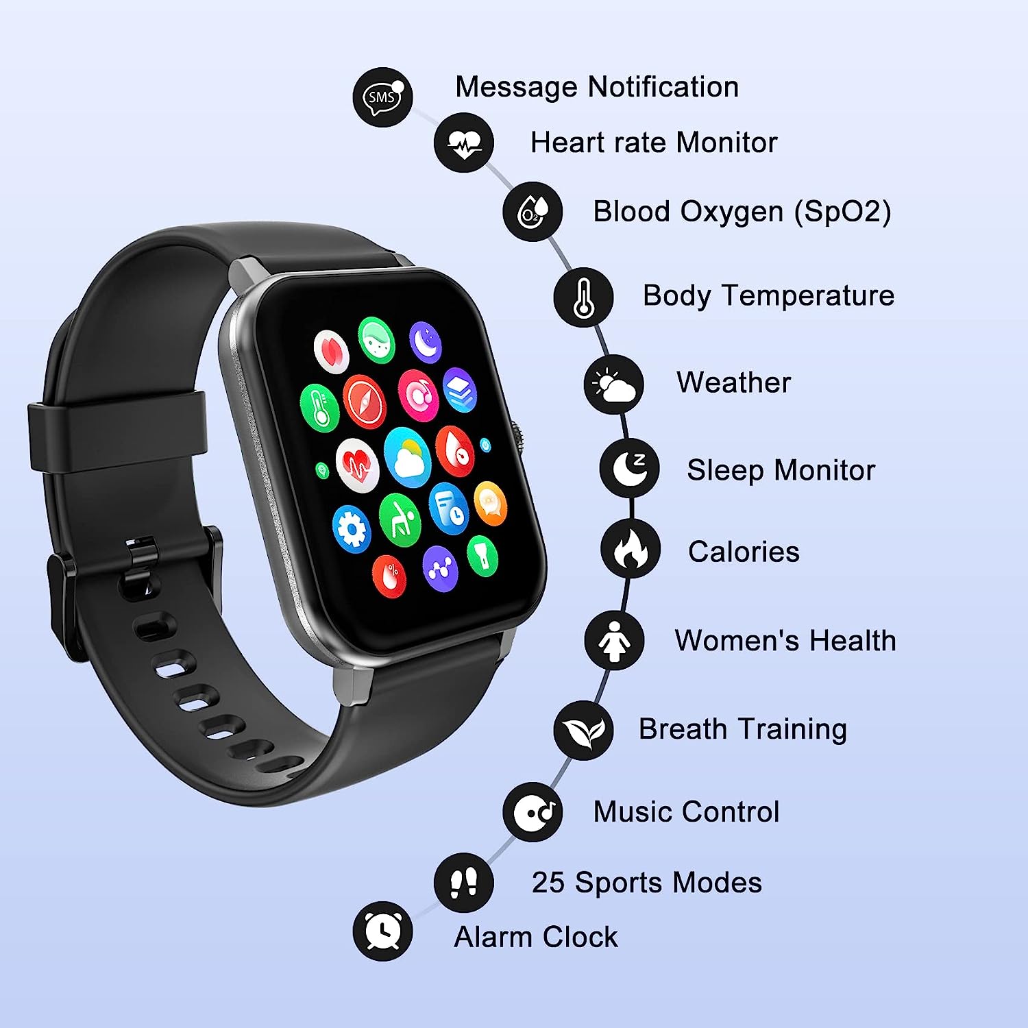 mart Watch Men Women Fitness Tracker Waterproof IP68 Heart Rate Monitor Blood Oxygen(SpO2),Pedometer,Stopwatch,25 Sport Modes,Body Thermometer,Weather,Smartwatch for Android iOS