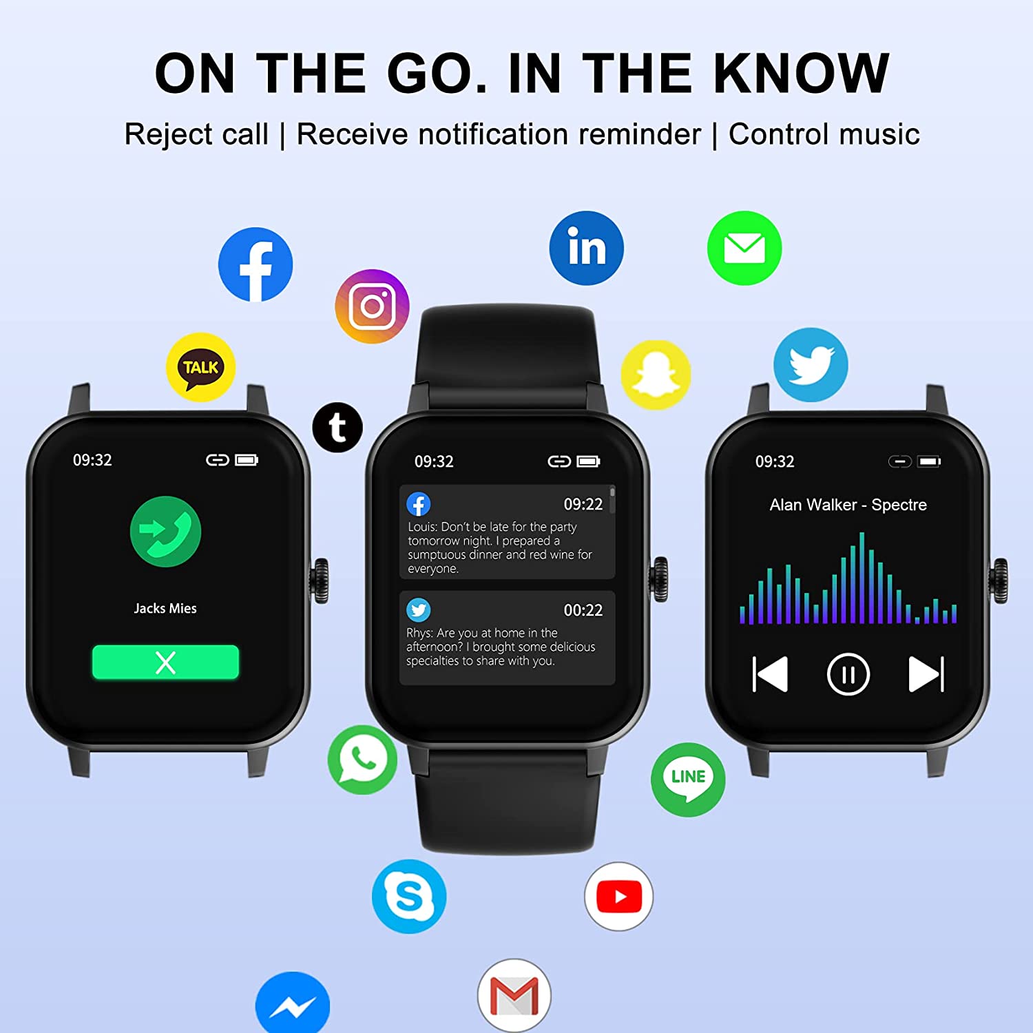 Smart watch for men notify you incoming calls, SMS notifications and Facebook, WhatsApp, Instagram, Twitter messages etc. when you connect the smartphone with fitness tracker. It is also designed with female health/sedentary reminders, become your smart heath assistant