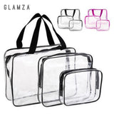 Glamza 3pc Clear Travel Bags Set - Pink or Black